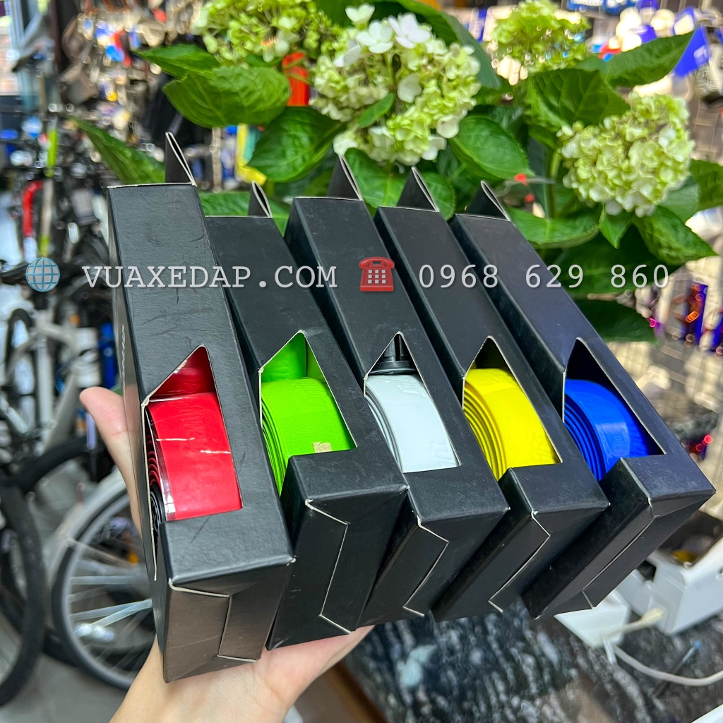 Sau khi được dán, băng ghi đông hứa hẹn một độ bám chắc chắn và khả năng xử lý hoàn hảo cho chiếc xe đạp đường trường của bạn. Dây đeo tay này biến mọi tay lái của xe đạp đường trường thành một người bạn đồng hành duyên dáng. Cấu trúc chắc chắn với chữ Lightweight được in nổi đảm bảo độ bám tốt nhất ở mọi vị trí. Vẻ ngoài phong cách được hoàn thiện bởi hai ghi đông cắm trong trông bằng carbon. Các màu có sẵn: xanh dương, vàng, xanh lá, hồng, đỏ, xanh denim, lục lam, xanh táo, đen, trắng, tím.