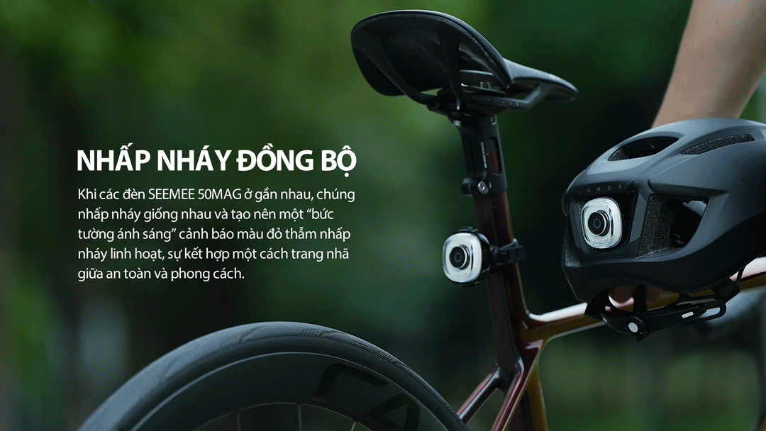 Chế độ flash pelotonsync: Khi 2 hay nhiều đèn SEEMEE 50 MAG gần nhau và nhấp nháy theo cùng 1 kiểu chúng sẽ tự động chuyển sang chế độ PelotonSync Flash, nhấn vào nút bấm để thoát chế độ đó