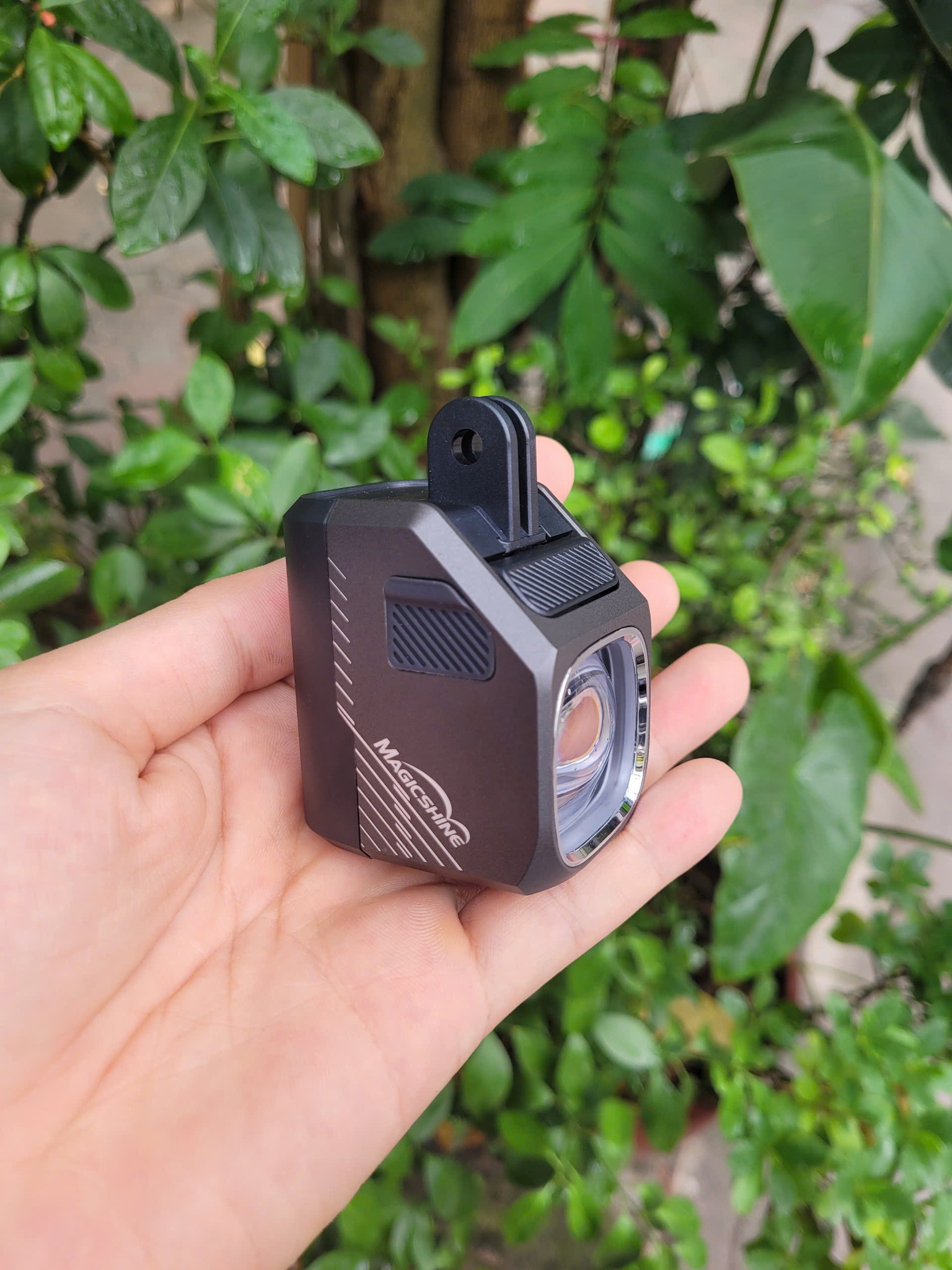 Đèn xe đạp MAGICSHINE EVO 1700SD có khả năng tháp lắp nhanh, dùng chuẩn treo dưới GO PRO