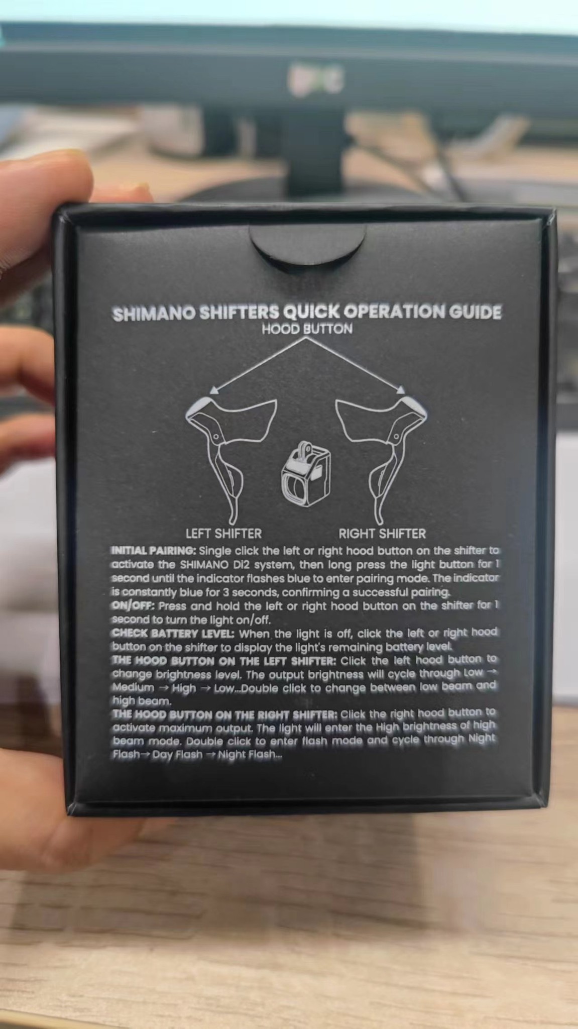 Không cần công tắc điều khiển từ xa, đèn được kết nối trực tiếp với hệ không dây SHIMANO Di2 của các bộ chuyển động SHIMANO 105, ULTEGRA và DURA-ACE