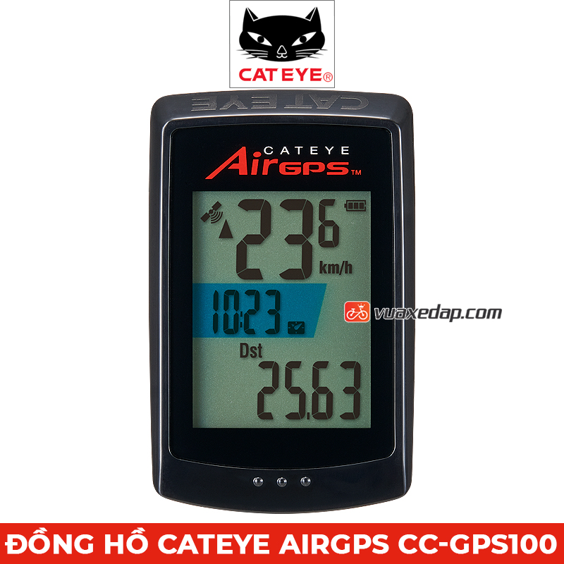 Đồng hồ xe đạp CATEYE AIRGPS CC-GPS100 là loại đồng hồ bắt sóng vệ tinh GPS cao cấp được sản xuất tại Nhật Bản, phù hợp sử dụng trên các loại xe đạp Road, Touring và MTB. Sản phẩm được thiết kế với màn hình siêu lớn, mỏng, nhẹ và chữ to, rất dễ nhìn, đặc biệt có tính năng chống nước tuyệt đối, sẽ là sự lựa chọn tuyệt vời cho những người đam mê đạp xe.