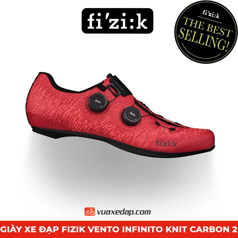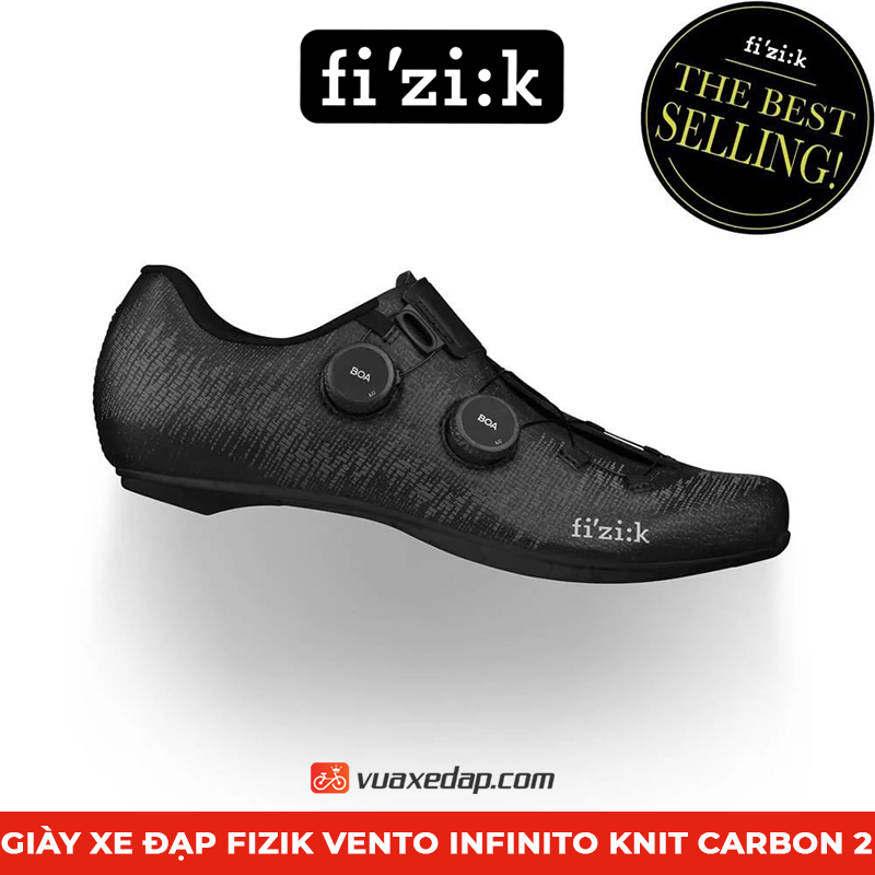 Giày xe đạp Fizik Vento Infinito Knit Carbon 2 là Phiên bản mới nhất của Infinito, có cấu trúc dệt kim mang đến sự thông thoáng đến đáng kinh ngạc. Sự kết hợp của đế Carbon (R2), hệ thống khóa BOA Li2 và công nghệ dệt tiên tiến đã khiến Infinito Knit Carbon 2 trở thành 1 trong những đôi giày siêu nhẹ của Fizik. Cực kỳ phù hợp cho những giải đua xe Road.