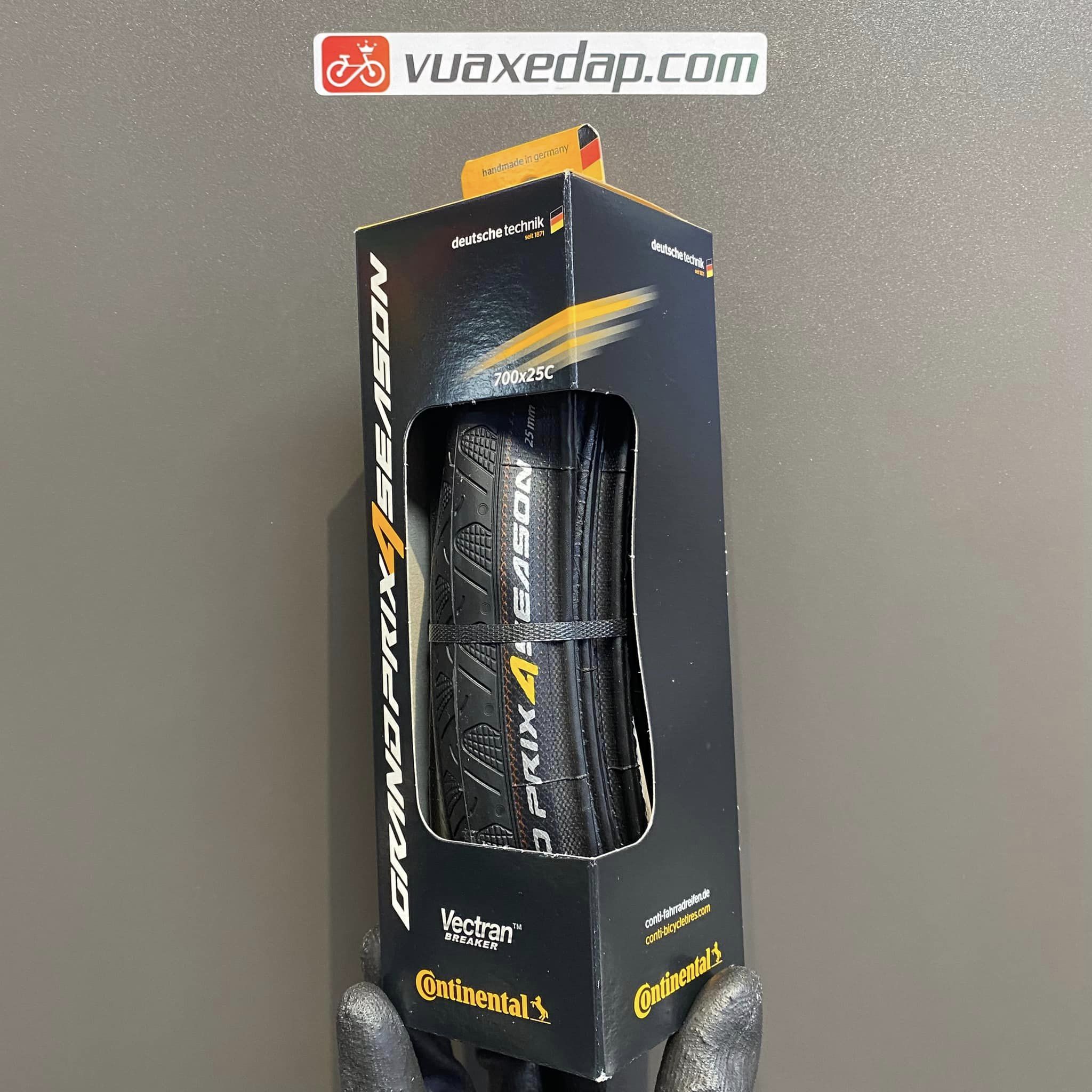 Lốp Continental Grand Prix 4 Season 700x25C là dòng lốp cao cấp tanh lụa được sản xuất thủ công tại Đức