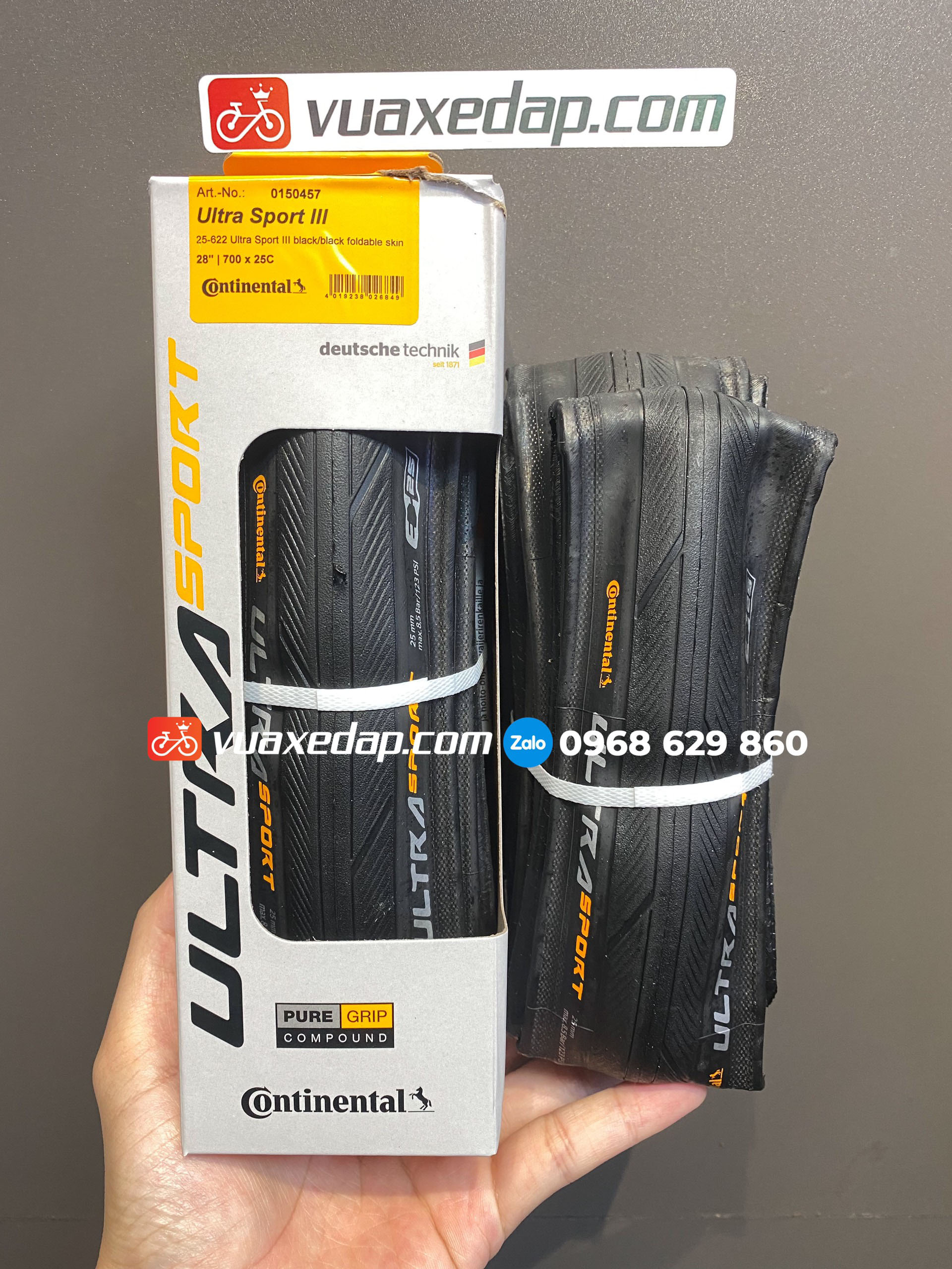 Continental là thương hiệu lốp xe nổi tiếng hàng đầu của Đức được thành lập vào năm 1871, Continental là một công ty đa quốc gia chuyên sản xuất lốp xe an toàn, hiệu quả và định hướng hiệu suất cho xe khách, xe thương mại, xe hai bánh như lốp xe máy, lốp xe đạp. Lốp xe đạp Continental ULTRA SPORT III 700x25c với công nghệ sử dụng hợp chất Pure Grip dựa trên hợp chất silicon hoạt động ổn định, cho độ bám tốt hơn và tăng cường độ bền cho lốp. Được sử dụng trong lốp xe đạp đua mang lại thấy hiệu suất cao và độ bền cực cao theo số dặm