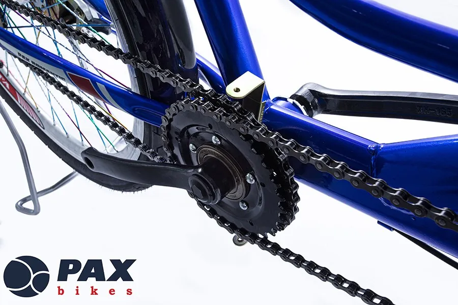 Thiết kế mới và tạo nên sự khác biệt hoàn toàn của xe đạp đôi PAX là hệ thống Dĩa Líp cùng nằm một bên xe, kết nối trực tiếp với nhau từ người ngồi trước và sau, điều này giúp cho người ngồi trước và ngồi sau có thể đạp tự do, tạo nên sự dễ dàng và thỏa mái khi đạp xe đạp đôi. Bên cạnh đó, thiết kế này cũng sẽ giải quyết vấn đề của các mẫu xe thương hiệu khác gặp phải là đảm bảo xe sẽ không bao giờ bị xúc sên (xích).