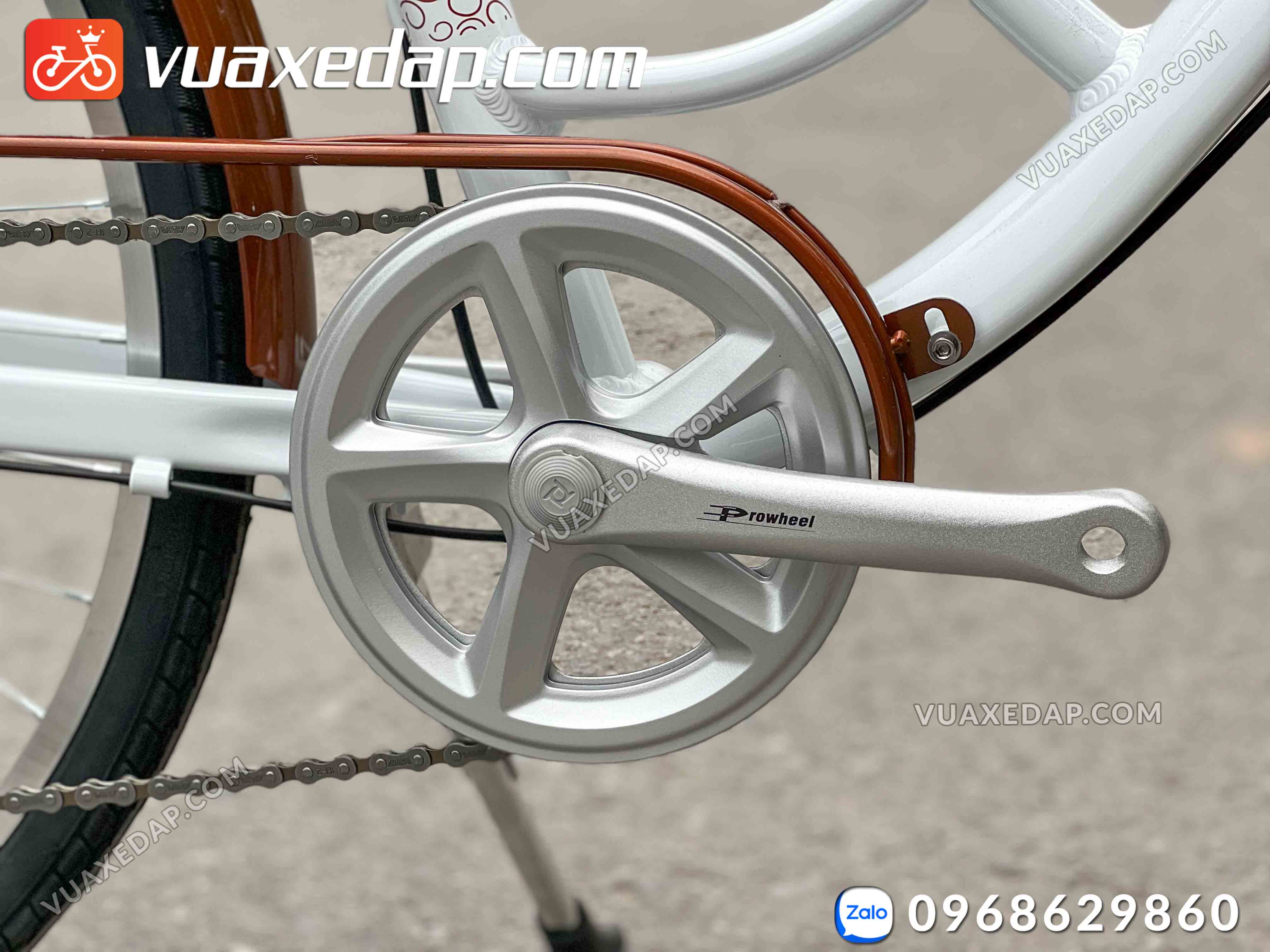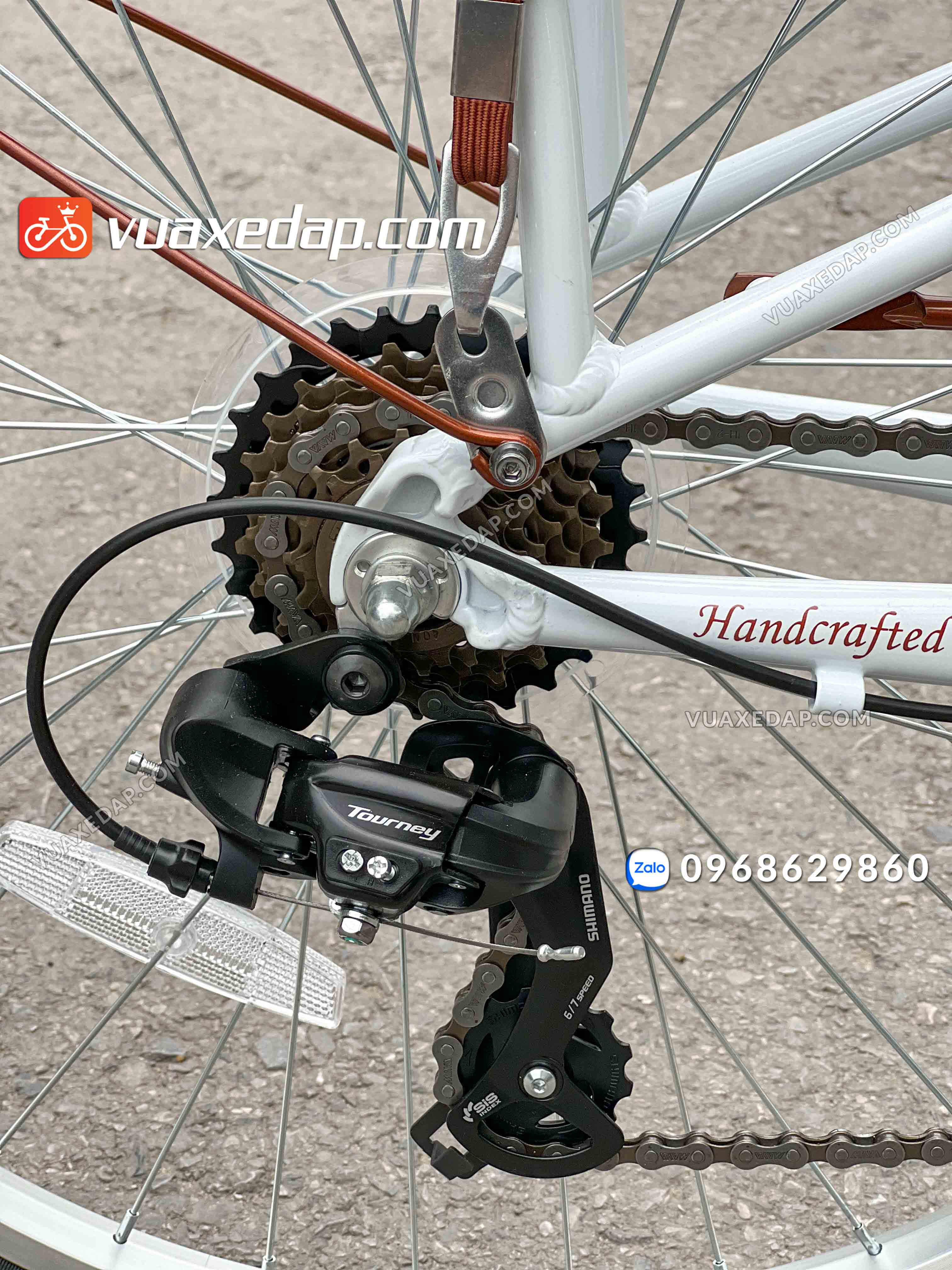 Với: càng trước, vành, yên, cọc yên, tay đề, líp, moay ơ, đùi đĩa, phanh trước & sau, chân chống, baga